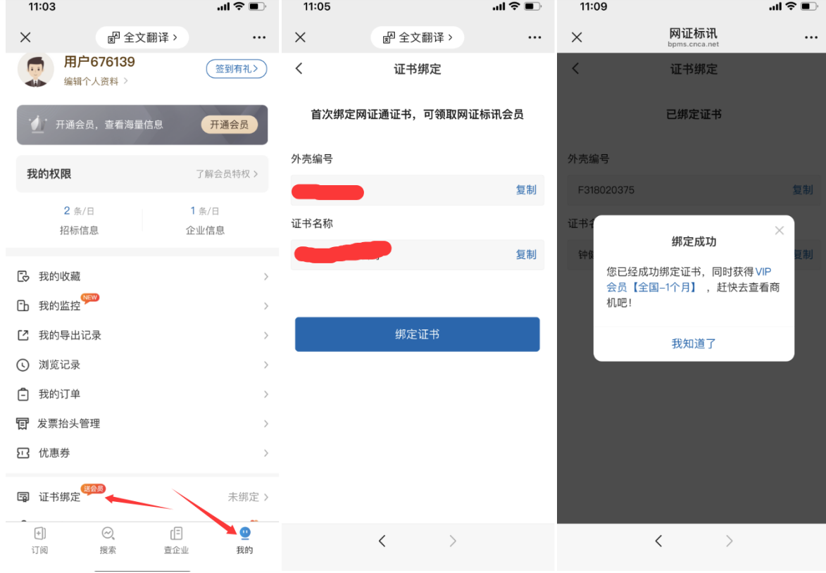 三、办理CA赠送网证标讯会员:CA绑定过程