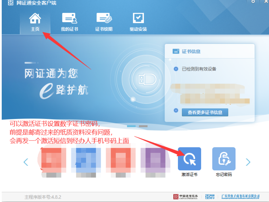 ①登录财智云系统-【所有功能】-【基础信息】-【CA管理】-【CA办理】 → ②按页面提示,填写新申请资料 → ③下载正确的申请表 → ④按照要求上传电子版资料 → ⑤付款并填写发票信息 → ⑥网证通制证后,进行证书邮寄,但此时证书未激活 → ⑦网上审核完成,客户同时邮寄上传的纸质资料 → ⑧审核人员收到纸质资料审核,合格之后发送激活短信 → ⑨收到激活短信,打开【网证通安全客户端】-【主页】-【激活证书】,然后登录财智云系统-【所有功能】-【基础信息】-【CA申请绑定】-【C绑定】,以上就是整个流程。 |