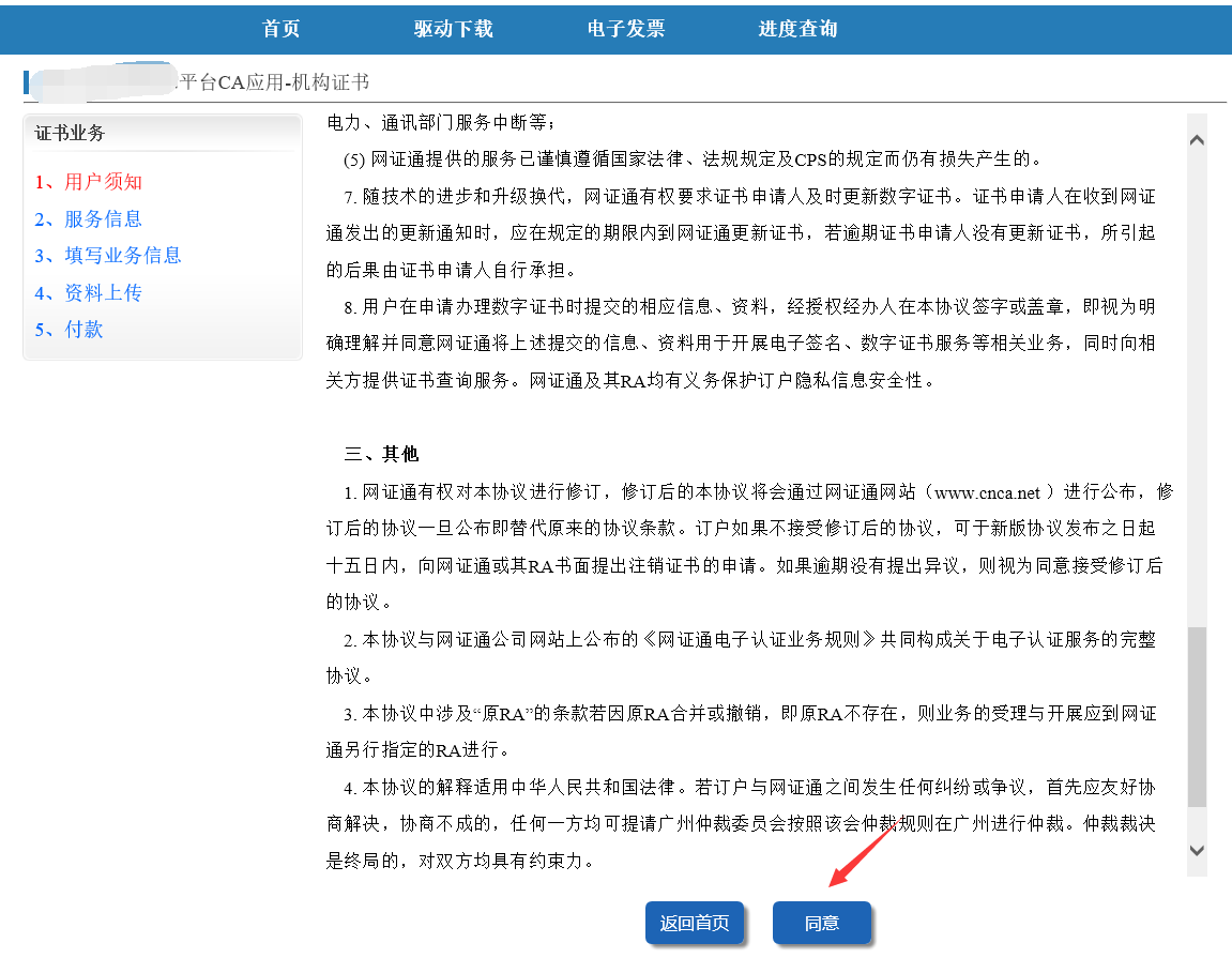 下一步确认申请意愿是经办人或法定代表人手机收到验证码,然后输入是验证码进行确定办理数字证书的意愿。